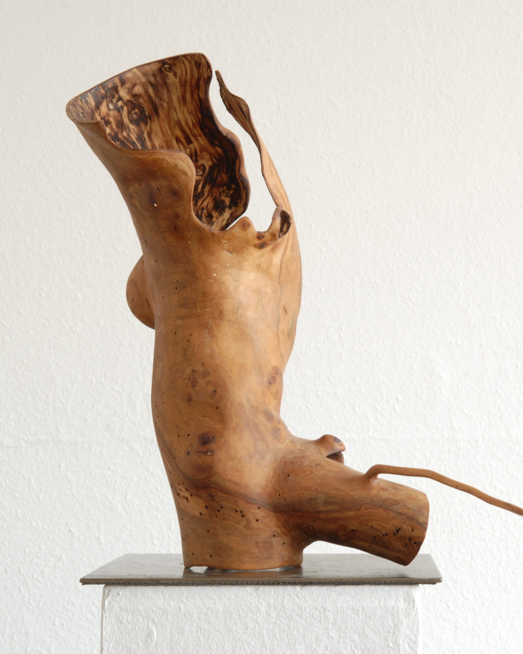 Gegen Ende der 80er begann ich mit meinen Arbeiten an den Materialien Speckstein und Holz, zunächst ausschließlich im privaten Umfeld und mit einfachen Werkzeugen. Fundstücke aus der Natur, die bereits eine Neigung hatten, das heißt Besonderheiten in Form, Färbung oder Maserung aufwiesen, nutzte ich und verfeinerte sie in die gewünschte Richtung. Grundsätzlich bin ich diesem Gestaltungsverlauf bis heute treu geblieben.